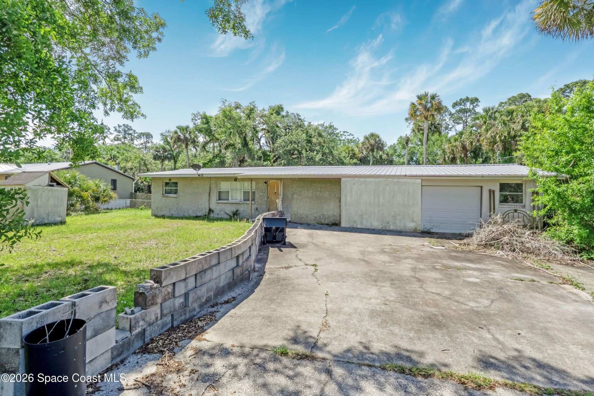 Concrete block home on .52 acre with great bones. Come make it your own. 2014 Metal roof. HVAC system is 5 years. Upgraded electrical in home and detached garage/workshop. Enclosed attached bonus area at this time does not have A/C but can be added easily for additonal square footage. Attached workshop. 1 Car garage. Inside laundy and big storage area. Behind the home is a huge workshop/garage with sliding doors. Workshop is approximately 640 sq ft. This property has many possibilities
